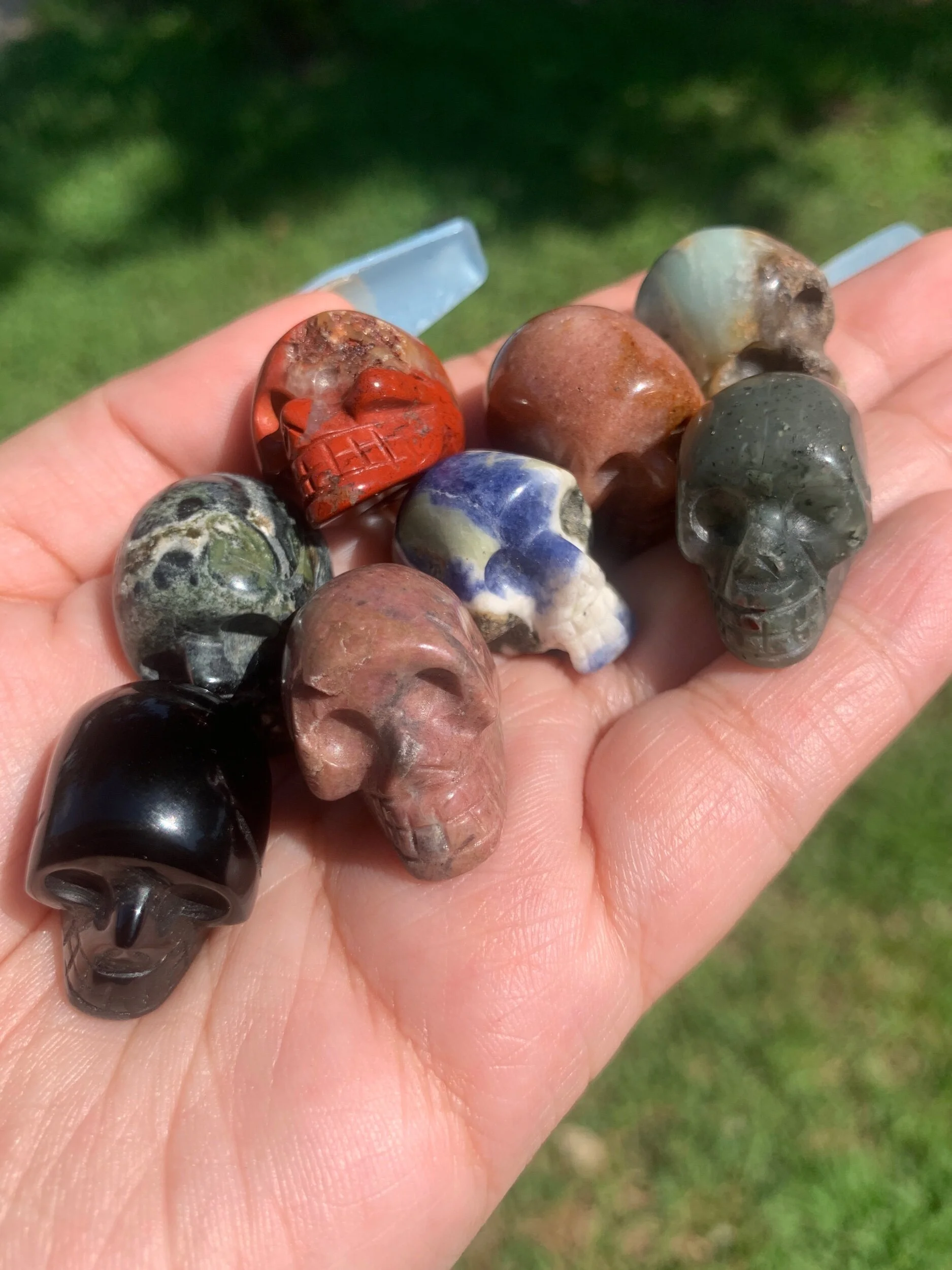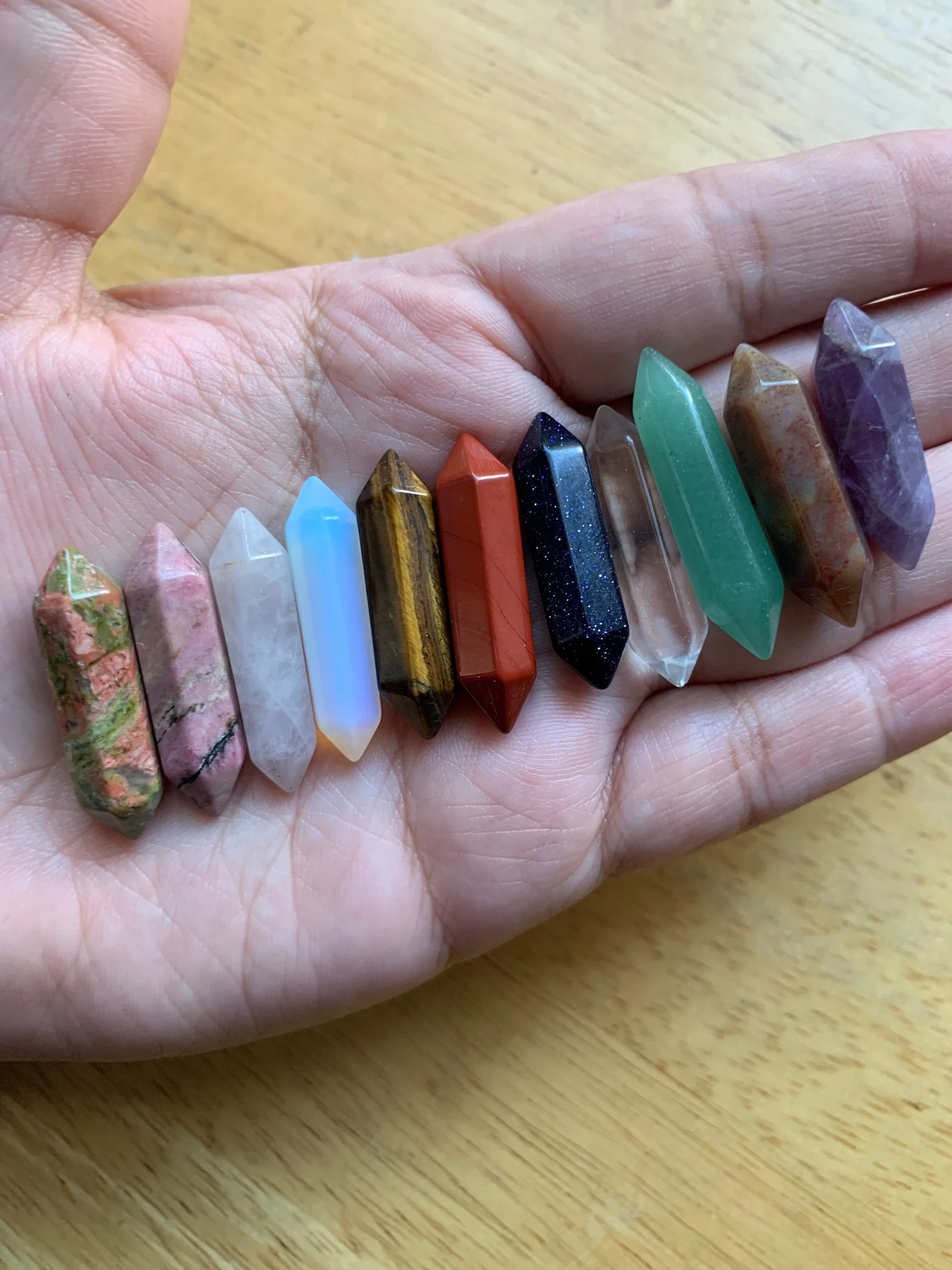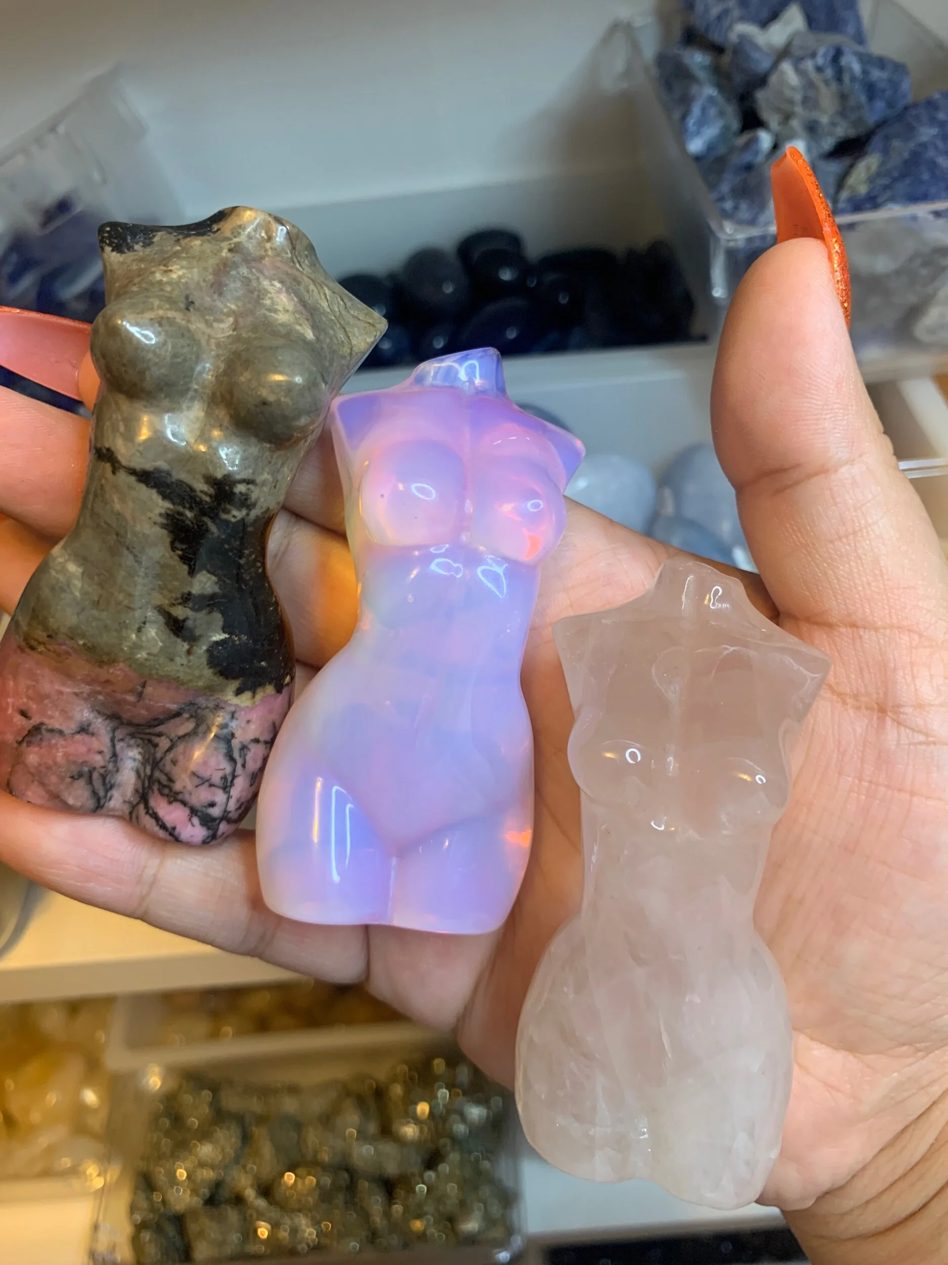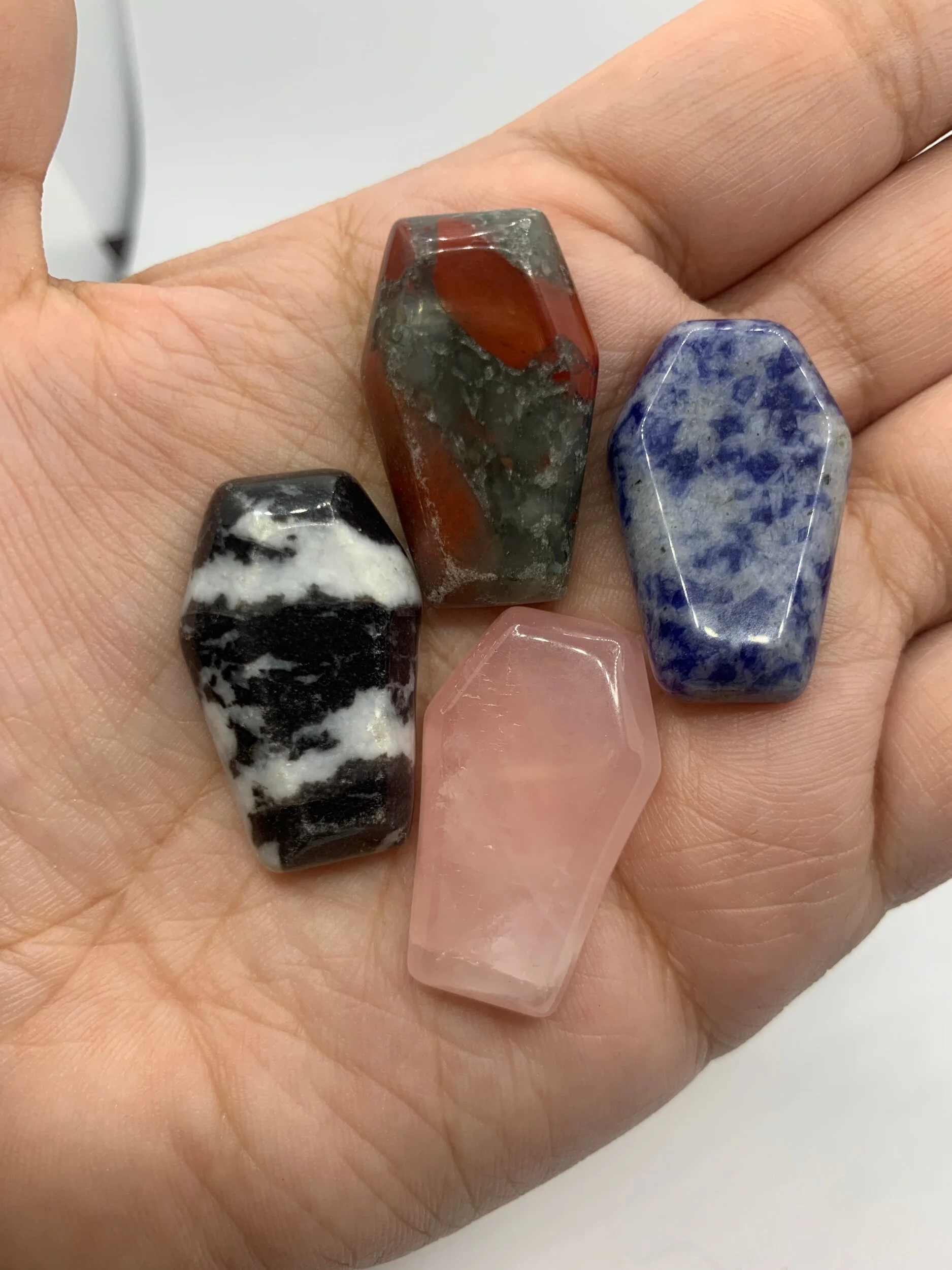 Categories: Select a Category Mystery Picks & Bundles Mystery Picks Bundles/Sets Zodiac Sets Crystal Mix/Confetti Raw & Tumbles Raw (Unpolished) Raw Tumbled (Polished) Tumbles Carvings Points | Towers Spheres Spheres Sphere Stands Minature Carvings Animals/Nature Moon & Stars Hearts Other Large Carvings Bowls Slabs | Freeforms Flames Statement Carvings / Minature Carvings / Quick View Chakra Selenite Wand from $10.00 Quick View Mini Spheres (20mm) from $4.00 Quick View Ammonite (2”) $12.00 Quick View Rhodochrosite Slices from $12.00 Quick View Pendulums $10.00 Quick View Pokémon Carvings $8.00 Quick View Crystal Handbag/Purse $6.50 Quick View Semi-Polished Grape Agate Eggs from $16.50 Quick View Emerald Angels 👼🏻 $12.00 Quick View “Groot” Amethyst Cluster $40.00 Quick View Mini Skulls 💀 $4.00 Quick View Goddess/Woman Body from $24.00 Quick View Crystal Ding-Dongs (2”) $12.00 Quick View Mini Coffins $6.50 Quick View Mini Buddha $8.50 Quick View Evil Eye from $5.50 Quick View Mini DT Points (1") from $1.00 Quick View Afghan Jade Apples $10.00 Quick View Crystal Fairies 🧚♀️ from $12.50 Quick View Peach Moonstone Eggs $9.00